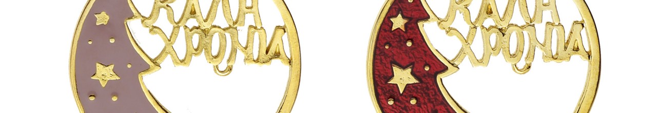 Μεταλλικές μπάλες με ευχή (Καλή Χρονιά) σε σάπιο μήλο και κόκκινο χρώμα..